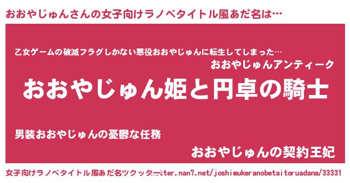 | 男性向けラノベタイトル風あだ名 | 『オオヤジュンアートオンライン』 |