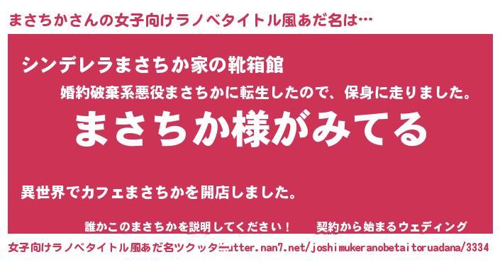 | 男性向けラノベタイトル風あだ名 | 『まさちかの嫁は女の子じゃないと思った?』 |