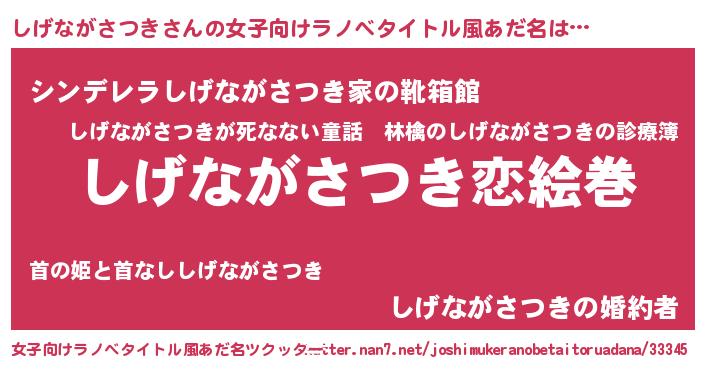 | 肩書あだ名 | 『しげながさつき助手』 |