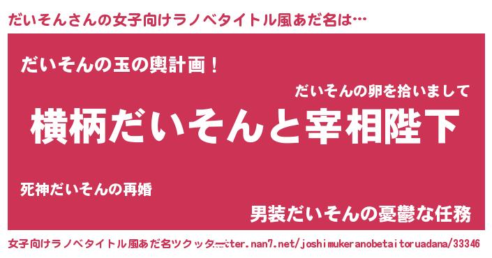 | 男性向けラノベタイトル風あだ名 | 『だいそんに滅ぼされるだけの簡単なお仕事です』 |