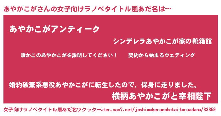 | 男性向けラノベタイトル風あだ名 | 『アヤカコガアートオンライン』 |