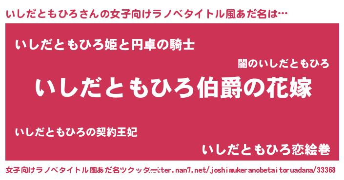 | ファンタジー風あだ名 | 『エターナルイシダトモヒロー』 |