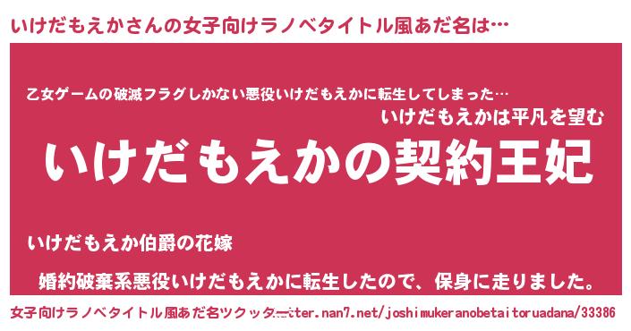 | 男性向けラノベタイトル風あだ名 | 『いけだもえかという概念が存在しない退屈な世界 』 |