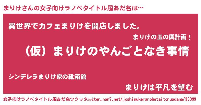 | 胡散臭い通販商品みたいなあだ名 | 『必ず成功する霊験あらたかなお札…その名も「まりけ」』 |