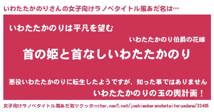 | 男性向けラノベタイトル風あだ名 | 『はたらくいわたたかのりさま!』 |