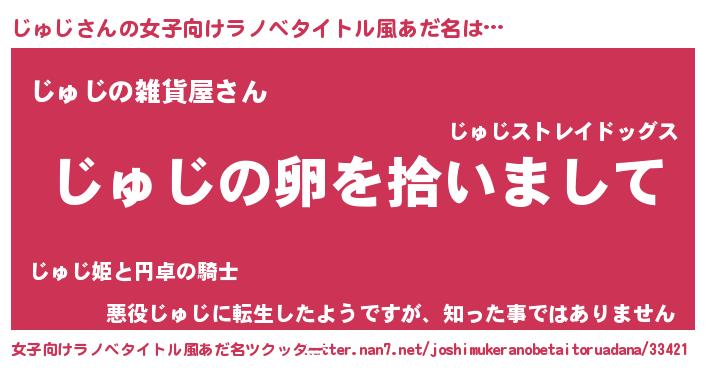 | 意味不明あだ名 | 『とにかく怪しいじゅじ』『自称じゅじ』 |