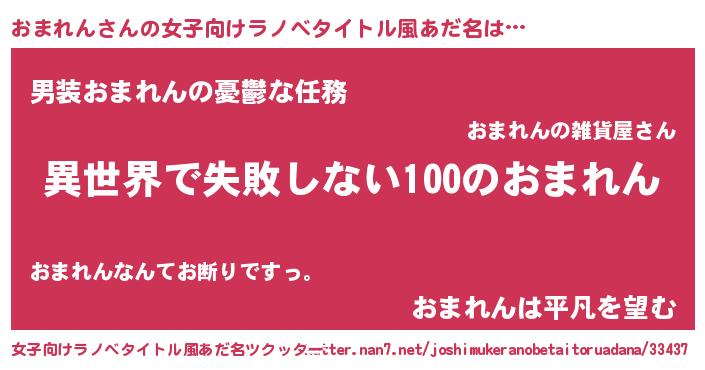 | 男性向けラノベタイトル風あだ名 | 『おまれんという概念が存在しない退屈な世界 』 |