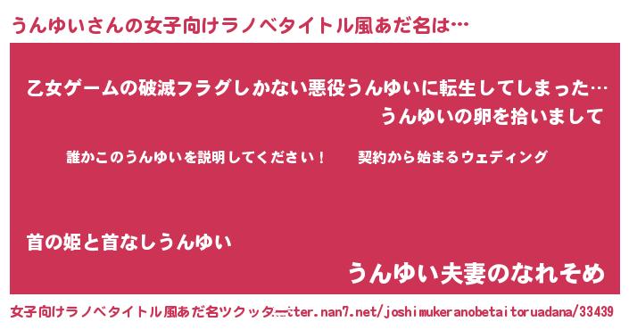 | 男性向けラノベタイトル風あだ名 | 『ウンユイアートオンライン』 |