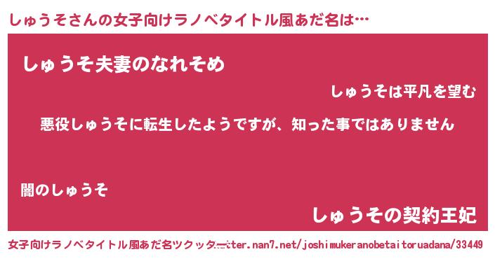 | 胡散臭い通販商品みたいなあだ名 | 『あなたにだけ特別に提供する世界で10本だけ現存している希少なブランデー…その名も「しゅうそ」』 |