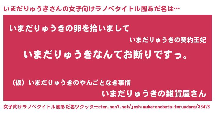 | 意味不明あだ名 | 『自称いまだりゅうき』 |