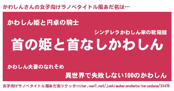 | 胡散臭い通販商品みたいなあだ名 | 『必ず成功する霊験あらたかなお札…その名も「かわしん」』 |