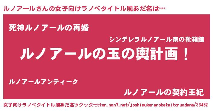 | ヒーロー風カッコイイあだ名 | 『慈愛の使者ルノアール』『仮面ルノダー』 |