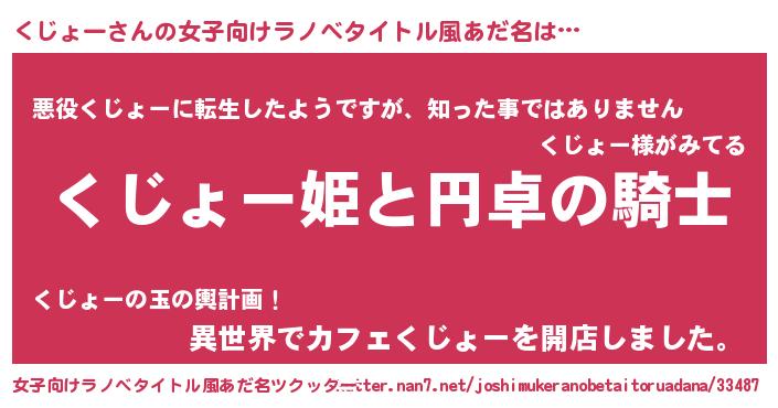 | 男性向けラノベタイトル風あだ名 | 『クジョーアートオンライン』 |