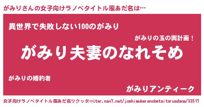 | ヘコむあだ名 | 『がみり(小並感)』『牛乳』 |