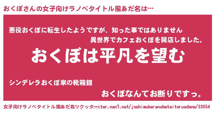 | 男性向けラノベタイトル風あだ名 | 『ダンジョンにおくぼを求めるのは間違っているだろうか』 |