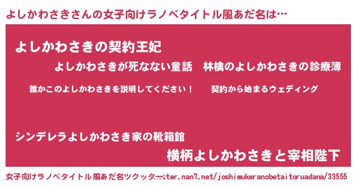 | 男性向けラノベタイトル風あだ名 | 『ヨシカワサキアートオンライン』 |