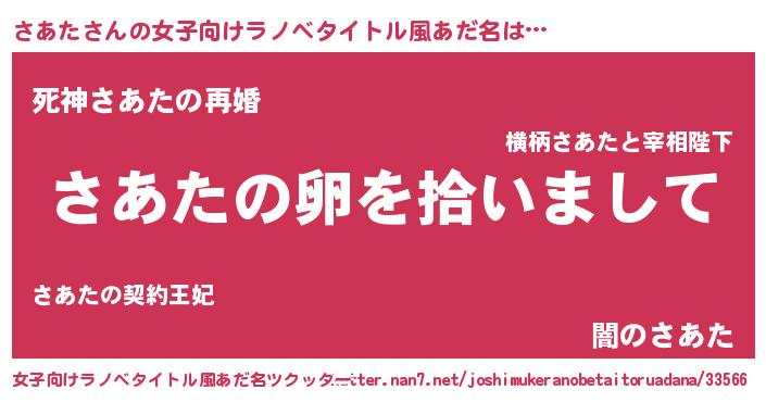 | 意味不明あだ名 | 『とにかく怪しいさあた』『自称さあた』 |