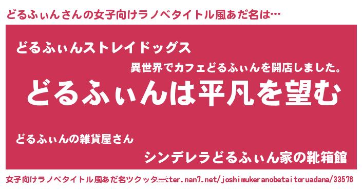 | 男性向けラノベタイトル風あだ名 | 『ダンジョンにどるふぃんを求めるのは間違っているだろうか』 |