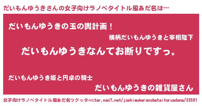 | 男性向けラノベタイトル風あだ名 | 『魔法科高校のだいもんゆうき』 |