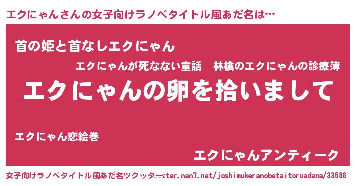 | 男性向けラノベタイトル風あだ名 | 『エクにゃんの嫁は女の子じゃないと思った?』 |