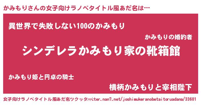 | ヒーロー風カッコイイあだ名 | 『ネオカミモリ』『ウルトラかみもりマン』 |