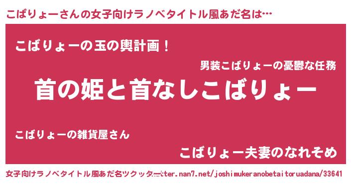 | 男性向けラノベタイトル風あだ名 | 『はたらくこばりょーさま!』 |
