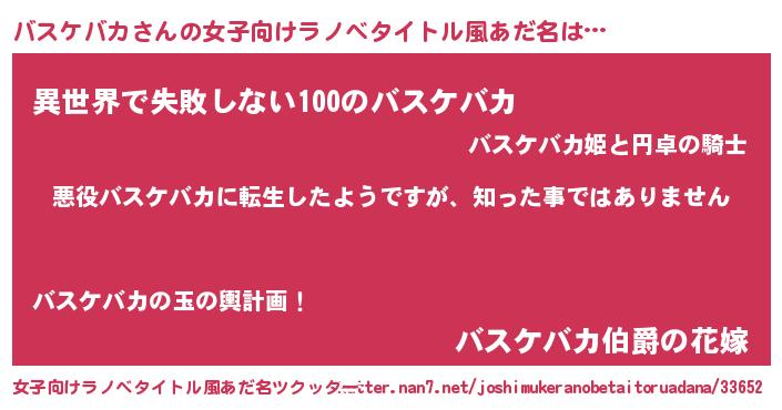 | 男性向けラノベタイトル風あだ名 | 『この素晴らしい世界にバスケバカを!』 |