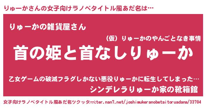 | 男性向けラノベタイトル風あだ名 | 『はたらくりゅーかさま!』 |