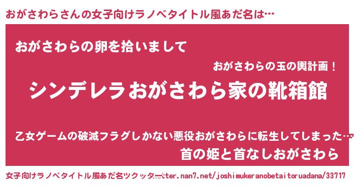 | 意味不明あだ名 | 『とにかく怪しいおがさわら』 |