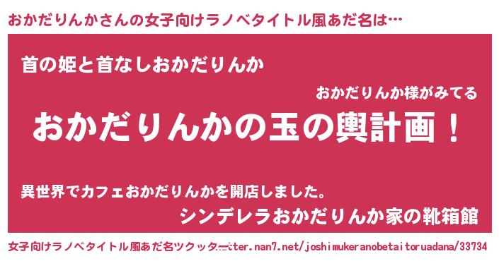 | 男性向けラノベタイトル風あだ名 | 『転生したらおかだりんかだった件』 |