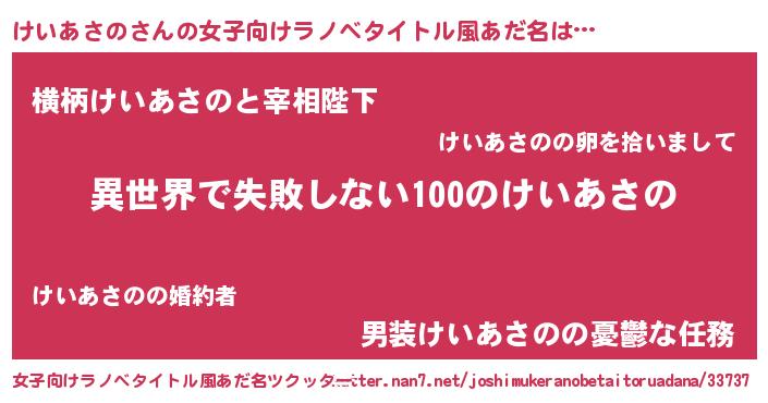 | 男性向けラノベタイトル風あだ名 | 『けいあさのという概念が存在しない退屈な世界 』 |