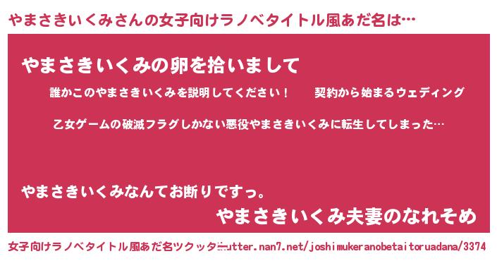 | 男性向けラノベタイトル風あだ名 | 『この素晴らしい世界にやまさきいくみを!』 |