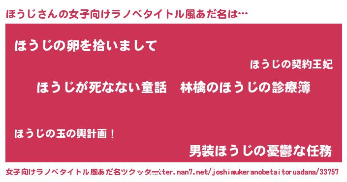 | 意味不明あだ名 | 『住所不定無職ほうじ(7歳)』『自称ほうじ』 |