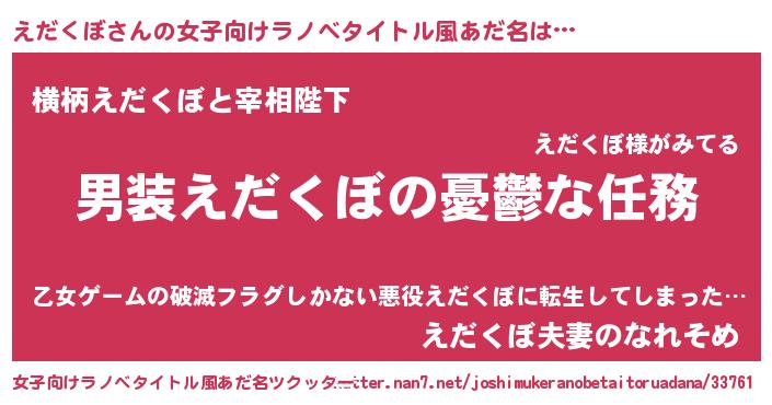 | 男性向けラノベタイトル風あだ名 | 『うちのえだくぼが世界を掌握している!』 |