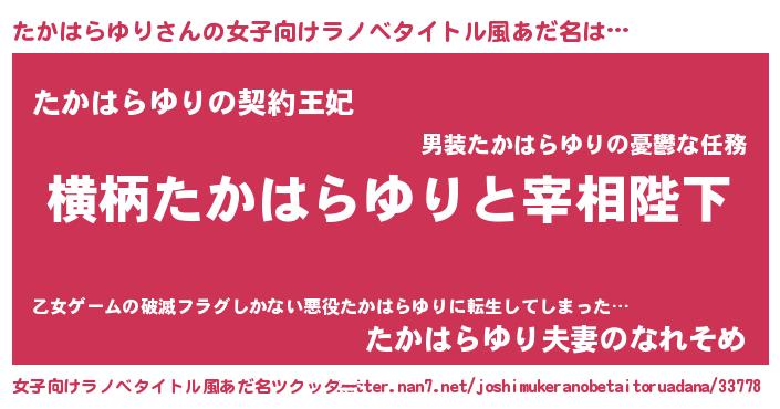 | ヒーロー風カッコイイあだ名 | 『ネオタカハラユリ』『仮面タカダー』 |