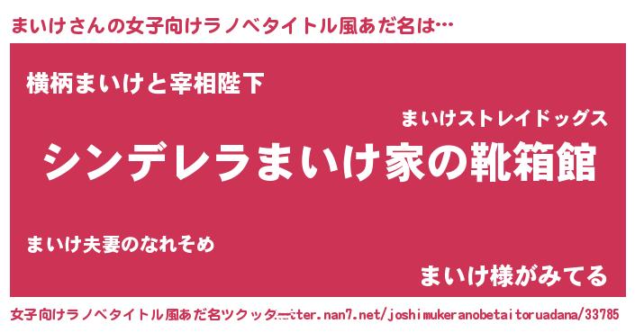 | 意味不明あだ名 | 『とにかく怪しいまいけ』『自称まいけ』 |