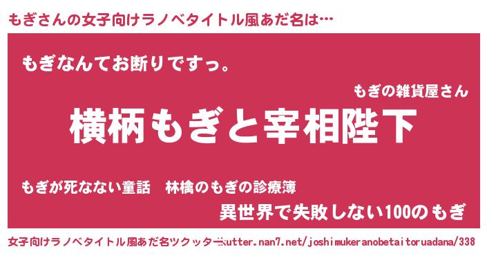 | 男性向けラノベタイトル風あだ名 | 『もぎに滅ぼされるだけの簡単なお仕事です』 |