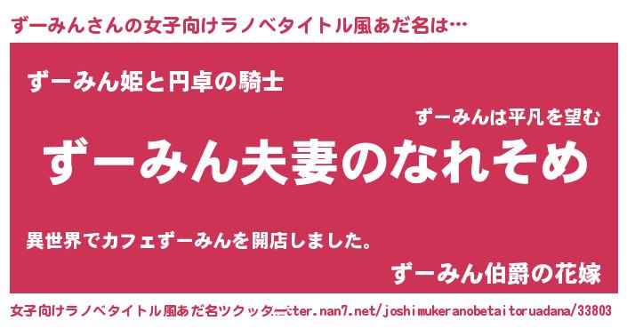 | 男性向けラノベタイトル風あだ名 | 『おまえをオタクにしてやるから、俺をずーみんにしてくれ! 』 |