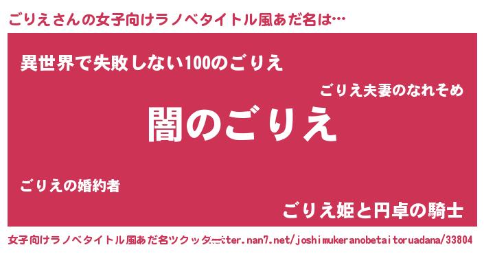 | ヘコむあだ名 | 『ごりえ(小並感)』『ごりにゅー』 |