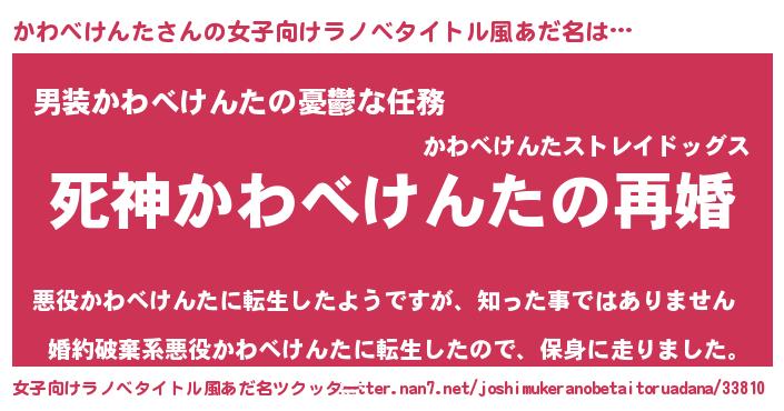 | 意味不明あだ名 | 『眠気覚ましガムかわべけんた味』 |