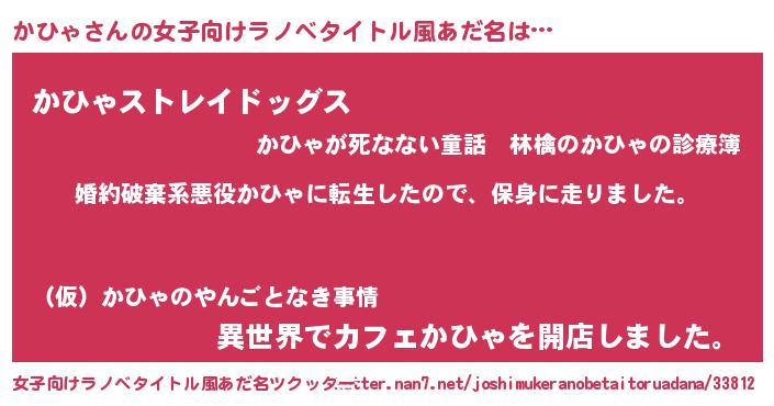 | 男性向けラノベタイトル風あだ名 | 『カヒャスレイヤー』『魔弾の王とかひゃ』 |