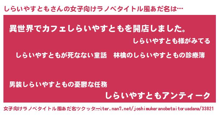 | 男性向けラノベタイトル風あだ名 | 『魔弾の王としらいやすとも』 |
