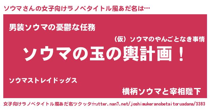 | 恥ずかしいあだ名 | 『プリティーソウマ』『ソウマデラックス』 |