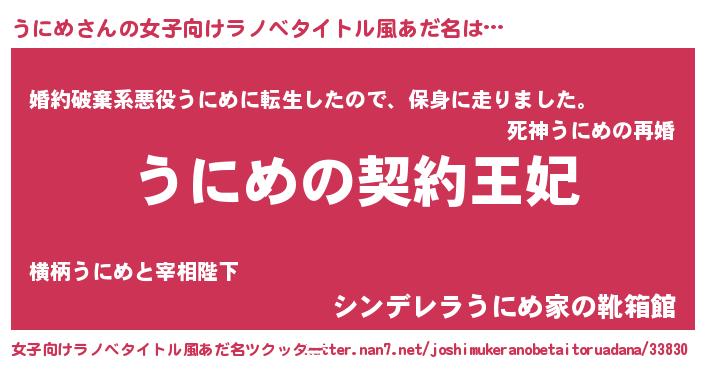 | 男性向けラノベタイトル風あだ名 | 『うにめという概念が存在しない退屈な世界 』 |
