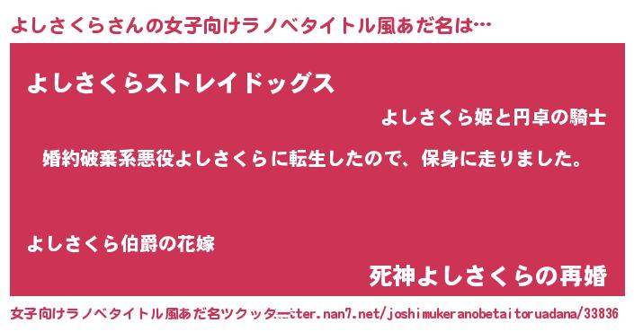 | 男性向けラノベタイトル風あだ名 | 『ヨシサクラスレイヤー』 |