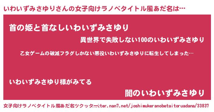 | 意味不明あだ名 | 『住所不定無職いわいずみさゆり(77歳)』 |