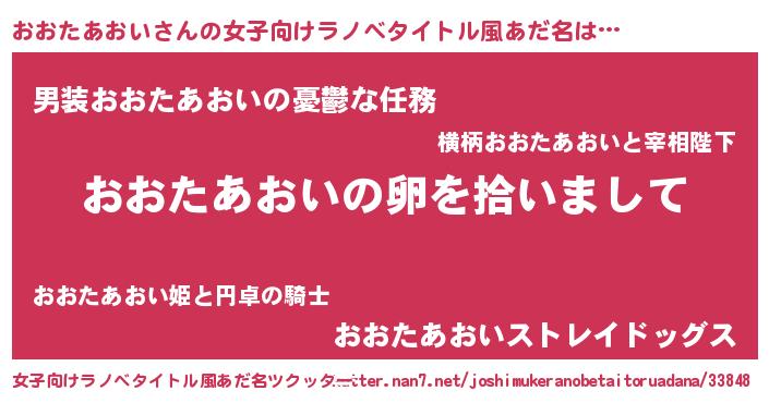 | 胡散臭い通販商品みたいなあだ名 | 『伝統あるサプリメント…その名も「おおたあおい」』 |