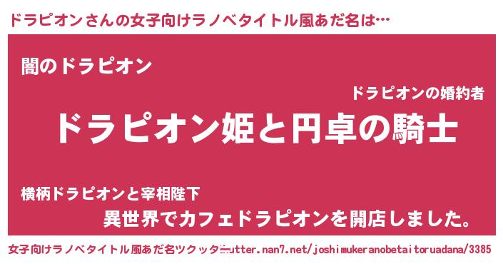 | 胡散臭い通販商品みたいなあだ名 | 『モテモテ間違いなしブレスレット…その名も「ドラピオン」』 |