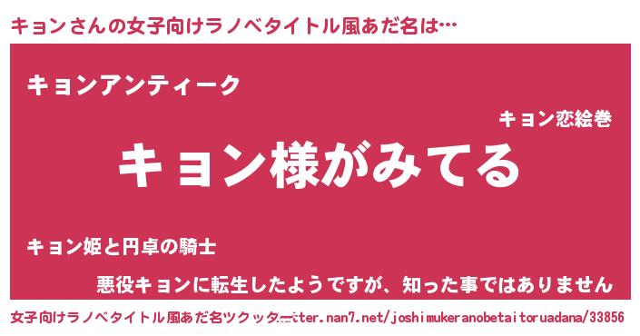 | 男性向けラノベタイトル風あだ名 | 『キョンの嫁は女の子じゃないと思った?』 |