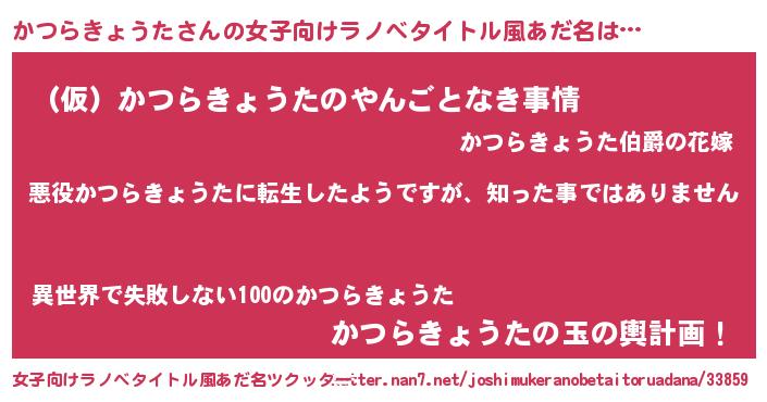 | 意味不明あだ名 | 『住所不定無職かつらきょうた(84歳)』 |